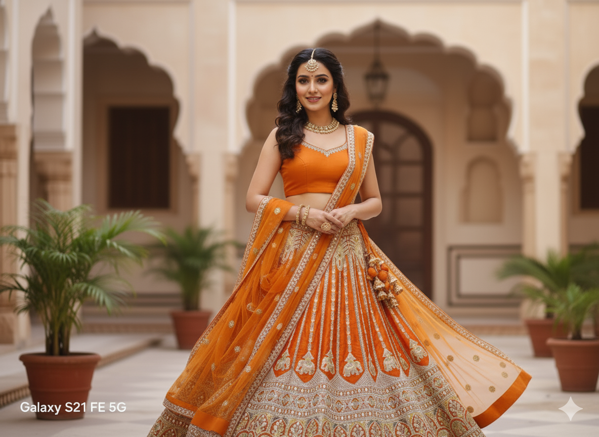 A lehenga is a stunning traditional Indian ensemble that beautifully combines elegance and artistry. It typically features a flared skirt, a fitted blouse (choli), and a flowing dupatta, adorned with intricate embroidery, sequins, zari, or mirror work. Perfect for weddings, festivals, and grand celebrations, a lehenga embodies grace, culture, and craftsmanship. Available in luxurious fabrics like silk, georgette, velvet, and chiffon, each design tells a story of timeless beauty — making it the ultimate choice for women who want to look regal and radiant.